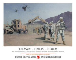 The print title is “Clear-Hold-Build” to reflect the Army tactics when occupying enemy territory.